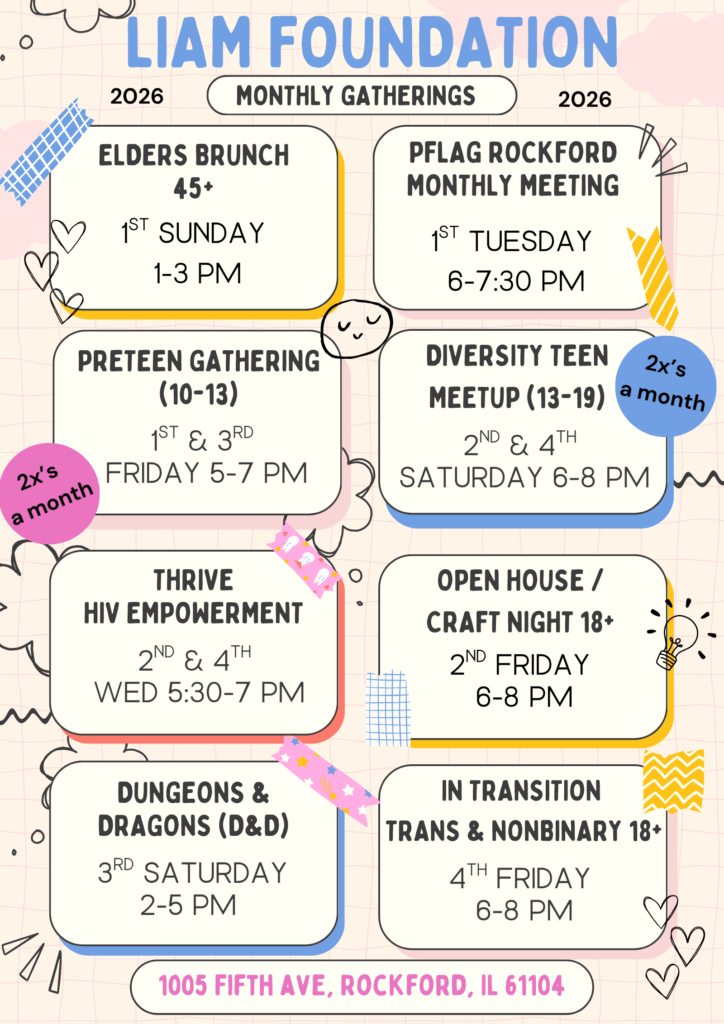 Welcome to our event calendar! Connect with community through our programs and support groups. Whether you’re looking to share experiences, get support, or just spend time with people who understand, there’s a place for you here. Come as you are—we’re in this together. There’s no need to register although, you may reach out ahead of time if you like, with any questions to eden@theliamfoundation.org.